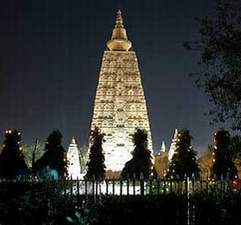 The Mahabodhi Temple stands east to the Bodhi Tree. Its architectural effect is superb. Its basement is 48 square feet and it rises in the form of a slender Pyramid, till it reaches its neck, which is cylindrical in shape. The total height of the temple is 170 feet and on the top of the temple are Chatras which symbolize sovereignty of religion. Four towers on its four corners rise gracefully giving the holy structure a poise and balance. This sacred edifice is like a grand banner unfurled by time to proclaim to the world the pious efforts of the Buddha to solve the knots of human miseries to ascend above worldly problems and to attain transcendental peace through wisdom, good conduct and disciplined life. Inside the temple in the main sanctum, on an altar, is a colossal image of Buddha in a sitting posture touching the earth by his right hand. In this posture the Buddha accomplished the supreme enlightenment. The statue is of black stone but it has been guided by the devotees. The entire courtyard of the temple is studded with a large number of varieties of stupas votive, decorative, memorative. These stupas are of all sizes built during the past 2500 years ago. Most of them are extremely elegant in structural beauty